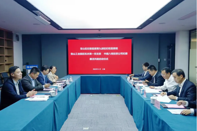 近日,中建八局投资公司纪委与宝山区纪委监委第九派驻纪检监察组、宝山工业园区机关第一党支部廉洁共建启动仪式在环科公司举行,三方以“党建工作基础更牢固、党组织战斗堡垒作用更凸显、党员干部先锋模范作用更鲜明、廉洁资源整合更高效”为目标,推动党风廉政建设与基层治理、国企经营、项目建设深度融合、同频共振。宝山区纪委监委第九派驻纪检监察组组长庄清源,宝山工业园区党工委副书记张翼,中建八局投资公司党委副书记、纪委书记、工会主席郜伟,环科公司董事长、党总支书记黄相锋等相关负责人参加活动。