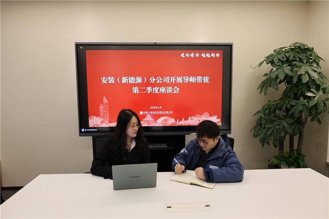 为持续加强新员工培养,深化导师与学员间的沟通交流,助力新员工快速成长、融入团队,近日,安装(新能源)分公司组织开展导师带徒第二季度座谈会。党群工作部部长胡苓芷与新员工朱华剑参加座谈。