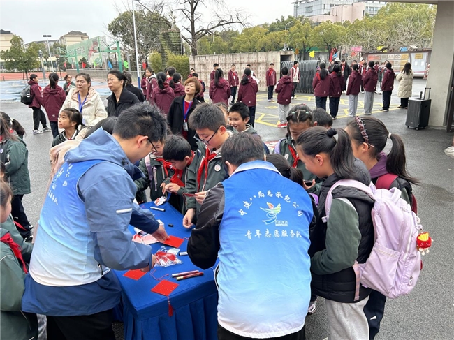 时值元宵佳节前夕,校园里洋溢着浓厚的节日氛围。志愿服务队配合诸翟学校策划开展了“贴福字”与“贴心愿”主题活动。志愿者们引导同学们将一个个饱含祝福的“福”字张贴在活动板上,并将写满新学期愿望的彩色心愿条细心贴至心愿墙上。活动现场气氛热烈,一张张灿烂的笑脸,一句句暖心的话语,共同构成了开学日里一道亮丽的风景线。